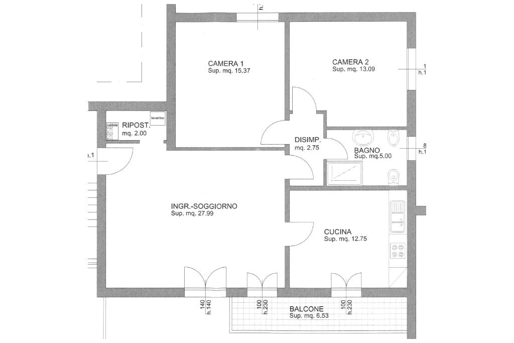 L'immobile offre spazi ben distribuiti e funzionali. L'ingresso si apre su un luminoso soggiorno, ideale per momenti di relax e convivialità. La cucina abitabile è perfetta per chi ama cucinare e condividere pasti in famiglia. L'appartamento dispone di due camere da letto (matrimoniale e doppia), garantendo comfort e privacy ed un bagno finestrato con doccia. Un balcone offre uno spazio esterno per godere di momenti all'aria aperta. Completano la proprietà una cantina, utile per riporre oggetti e attrezzature.