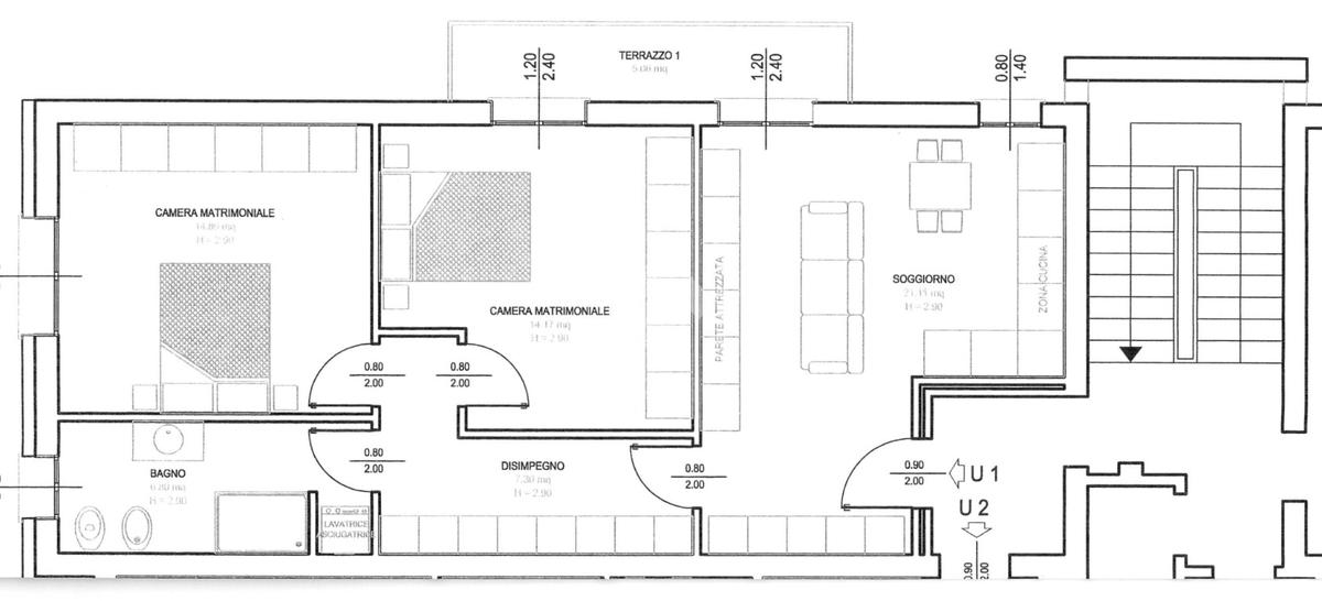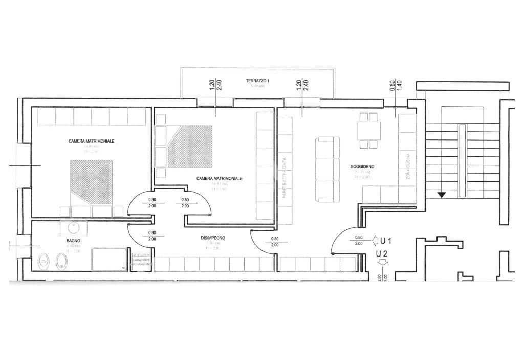 Situato al piano primo, in palazzina dotata di ascensore, l'appartamento si estende su una superficie di 90 mq, suddivisi in tre locali ben distribuiti. La disposizione interna prevede un soggiorno accogliente con cucina e due camere da letto matrimoniali spaziose, un bagno finestrato ed un balcone( 5 mq.) ideali per chi cerca un ambiente confortevole e ben organizzato. Box di 16 mq incluso, al piano terra.